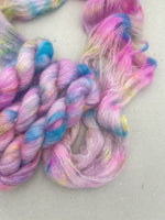 Kid silk lace 64% Kid mohair and 36% silk, brushed singles 420 m/50g Hanks Needles: 2,5mm-5mm Single ply
