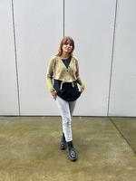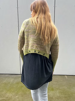 Målene er baseret på cardiganens størrelse efter vask; den kan udvide sig ved vask, afhængigt af hvordan du vasker den. Du kan ændre vidden ved at placere knapperne anderledes.