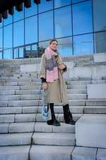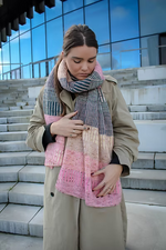 The scarf is double knitted according to the print instruction, throughout the hole pattern. Skip a round or add on a round (based on pattern) if needed, to minimize or extend the length of the scarf. Please keep in mind that the colors are the same on both sides, they wont mirror each other like they often do in double knit.