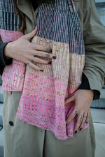 Yarn quantity required is based on an average , and is therefore an approximate number. The scarf can be knitted in any yarn that consist of the same thickness as Merino sock and the color combination is not set it stone, so feel free to mix up different colors than have been selected in the pattern.