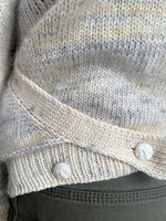 Målene er byggð á cardiganens stærð eftir vask; það er hægt að útvíkka sig ved vask, afhængigt af hvernig þú vasker den. Þú getur breytt vidden ved at placere knapperne öðruvísi.