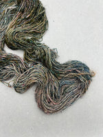 A true artisan yarn with rich texture and vibrant personality, our Recycled Silk Sari Yarn is a joy to work with. It adds a bold, one of a kind look to your projects full of character and color.